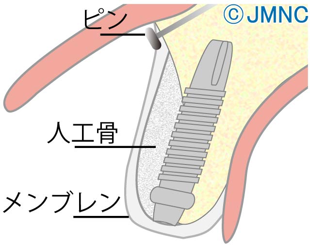 骨を増やしたい場所に骨の元となる血液を溜め人工膜で覆って骨をつくります