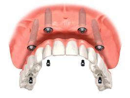 ”は、顎の骨が無い部分に4~6本のインプラントを埋入し、その日に歯(仮歯/人工歯など)が装着でき噛めるようになる最新の術式です。